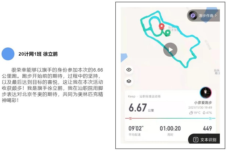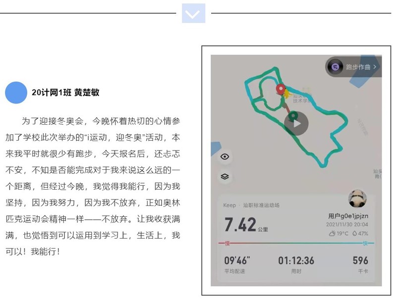 为贯彻落实团中央、国家体育总局、全国学联《关于面向大学生团员组织开展“青春爱运动 健康强中国”全民健身活动的通知》的有关要求,11月30日晚上7点整,由团委承办,艺术体育系团总支、学院学生会协办的“i运动,迎冬奥”迷你马拉松荧光夜跑活动在院本部田径场举行。一起和小新回顾一下这场视觉盛宴吧!