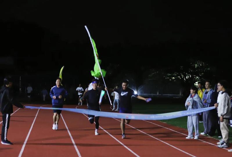 经过了平坦的拱桥校道、升旗台、情人路、信息大楼……他们坚持不懈,唯有向前奔跑。终于来到了最后的冲刺,在那最后一刻,同学们迈开了坚定有力的步伐,冲过终点红线,胜利也即刻在眼前!